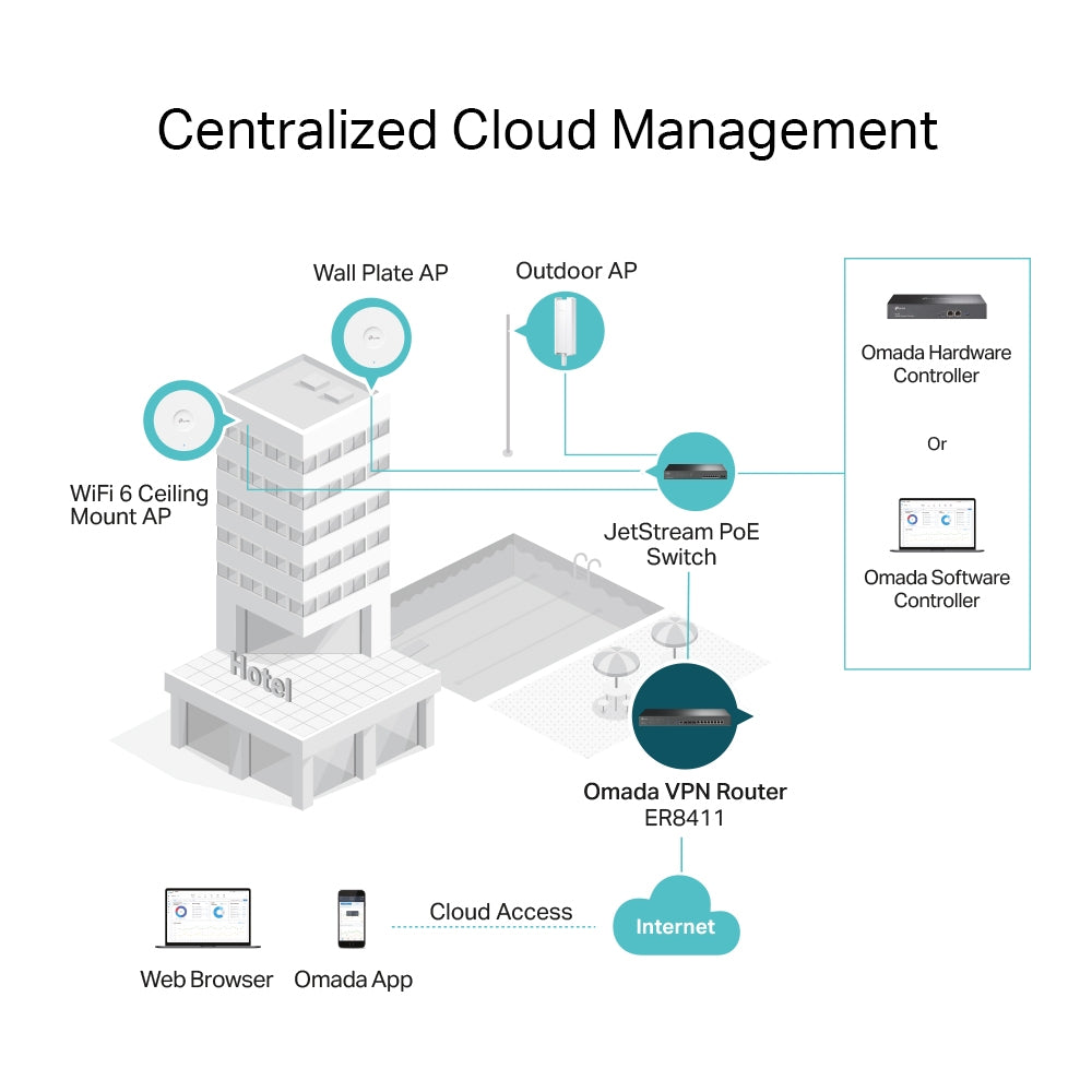 Centralized Management: Cloud access and Omada app for ultra convenience and easy management.